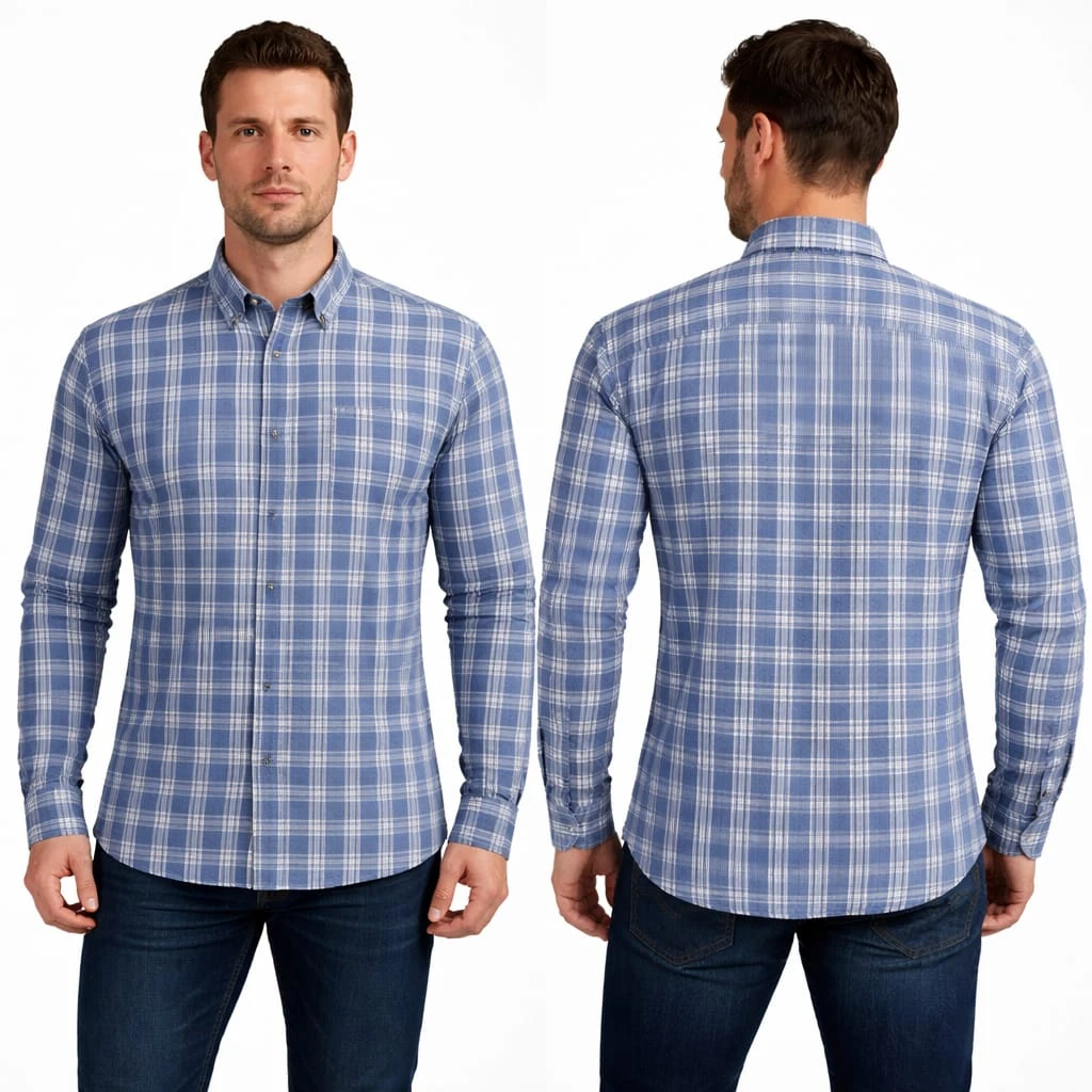 Add a touch of timeless style to your wardrobe with this men’s cotton checked shirt. Crafted from premium-quality cotton fabric, it offers excellent breathability and all-day comfort. The elegant blue and white check pattern gives a fresh and clean look, perfect for both casual and semi-formal occasions.