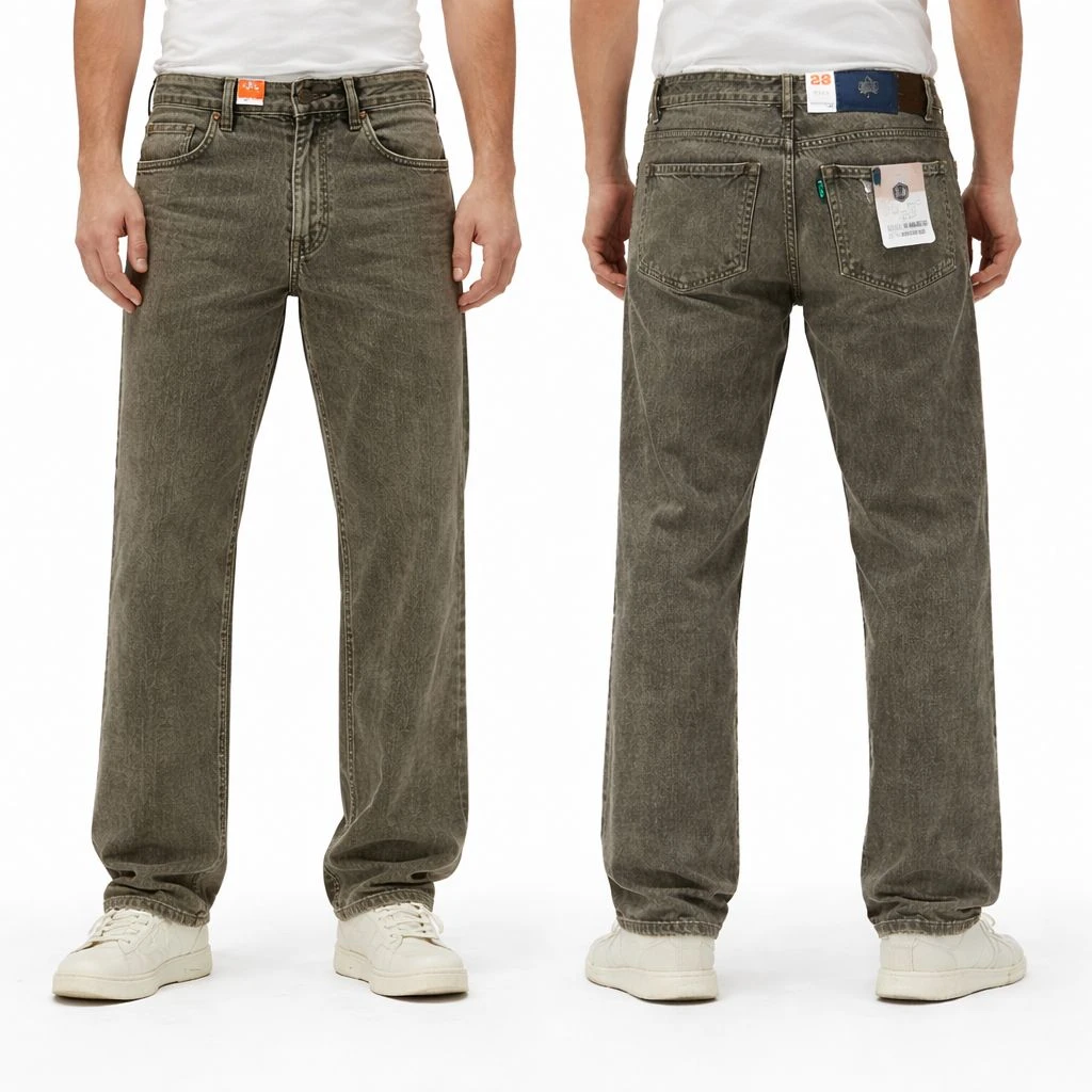 Add a rugged, vintage edge to your denim collection with our Stone-Washed Olive Grey Jeans. These jeans feature a distinctive heavily-washed finish that creates a textured, "lived-in" look with unique high-and-low color tones throughout the fabric.