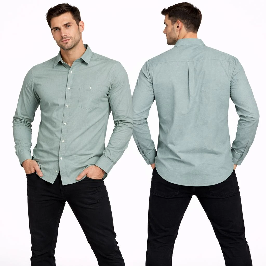 This shirt is incredibly versatile. For a sharp, professional look, pair it with navy chinos and brown leather shoes. For a more relaxed, weekend aesthetic, wear it untucked over black slim-fit jeans with white sneakers. The green tone also works perfectly when layered under a grey blazer or a tan Harrington jacket.